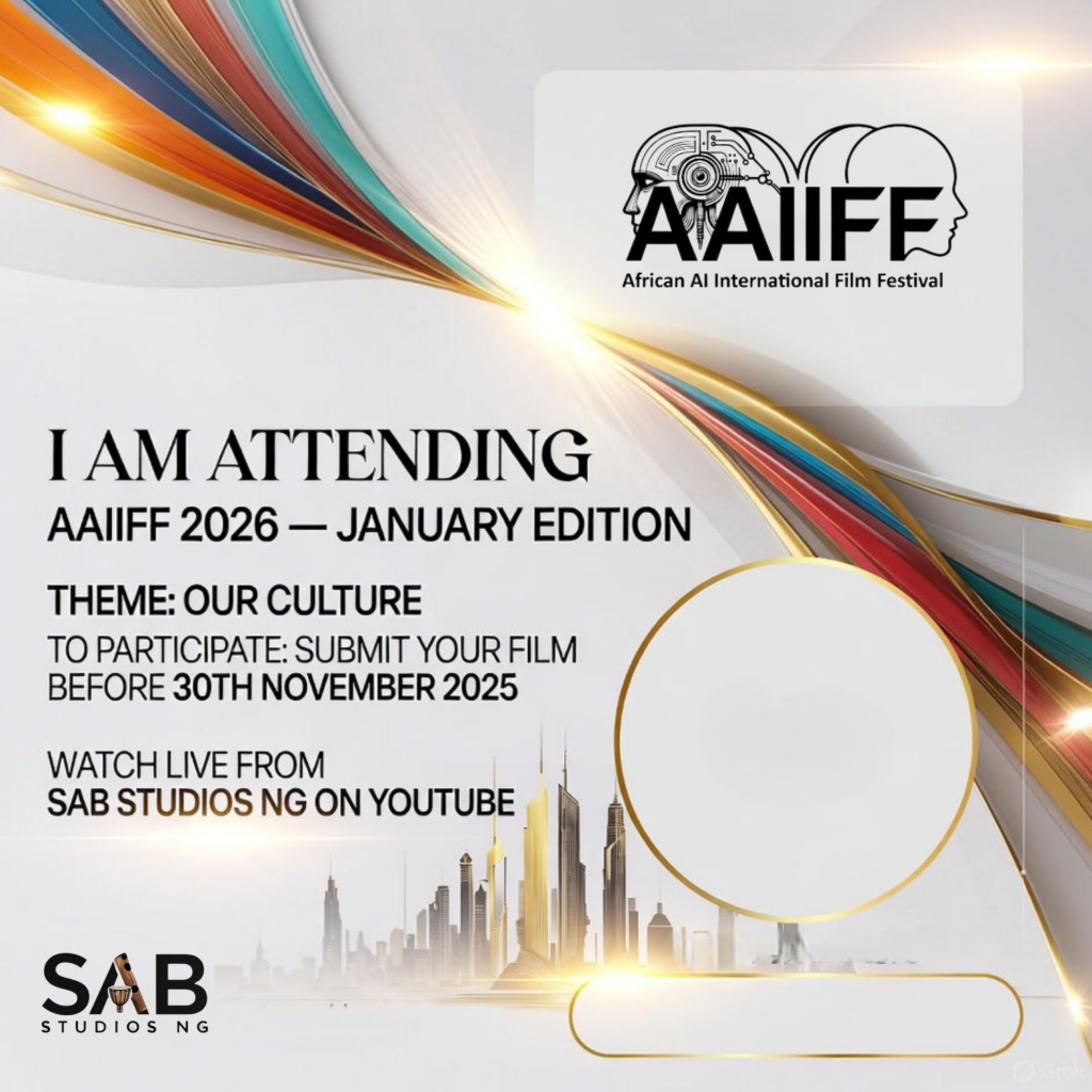 Experience the world’s most exciting intersection of storytelling and technology. The African AI International Film Festival brings creators together to showcase cutting-edge films, cross-cultural narratives, and groundbreaking artistic expressions powered by AI. Streaming live on SAB Studios NG YouTube—everyone is invited.