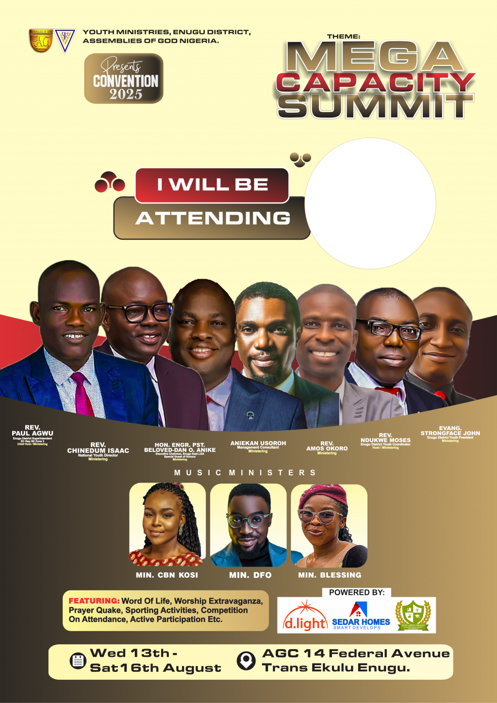 2025 Youth Convention – MEGA CAPACITY SUMMIT, scheduled to hold from Wednesday 13th to Saturday 16th August at AGC 14 Federal Avenue, Trans Ekulu, Enugu.