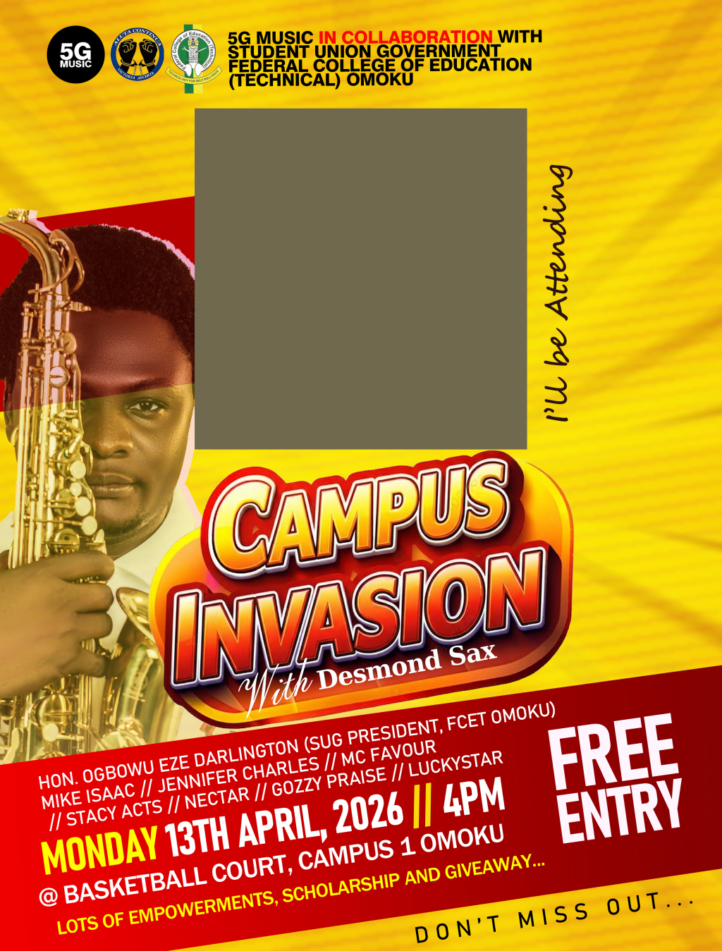 Click on the link to generate your personalized flyer for CAPMUS INVASION with Desmond Sax