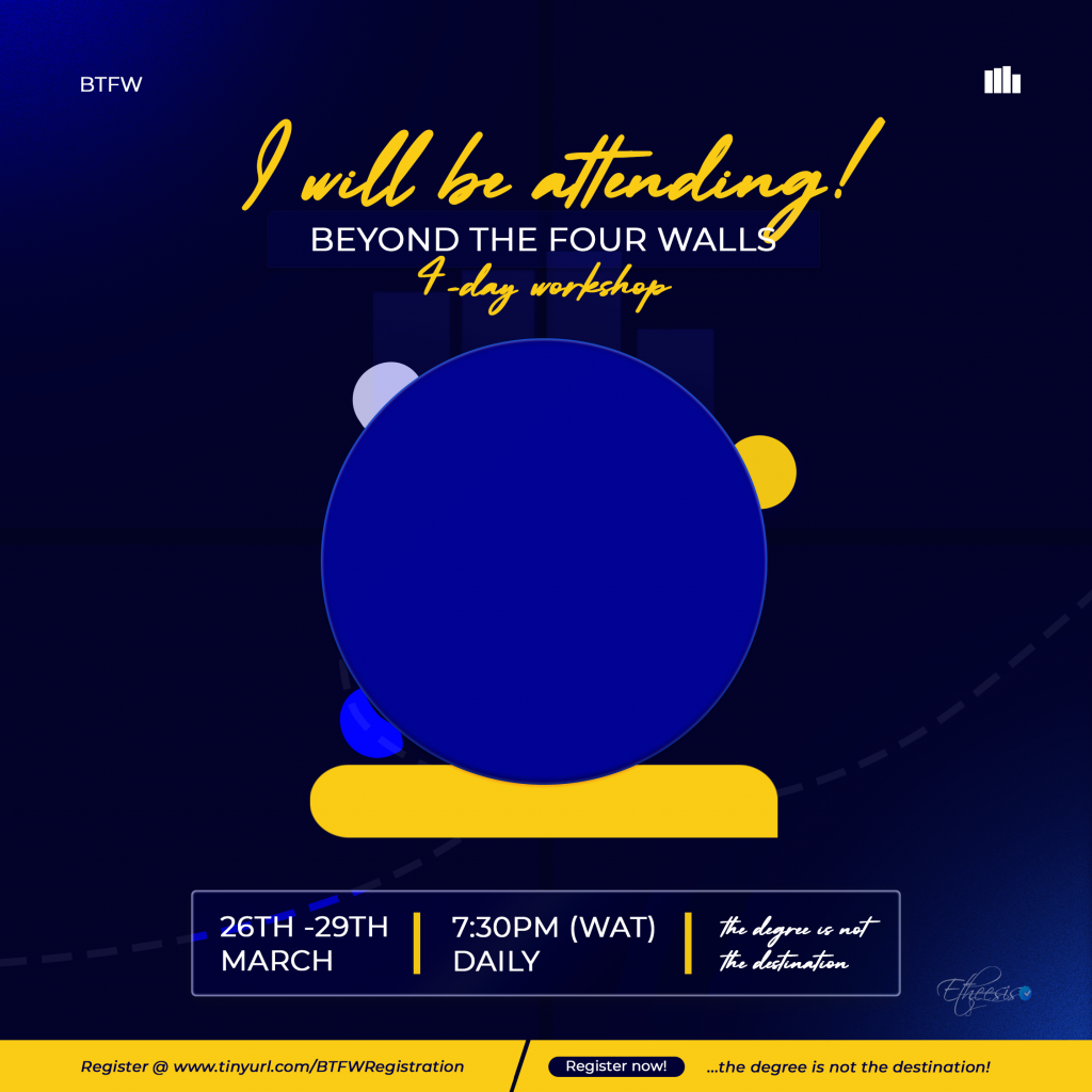A custom display picture banner for the attendees of the Beyond The Four Walls BTFW workshop, Add your photo and name to personalize your DP to...