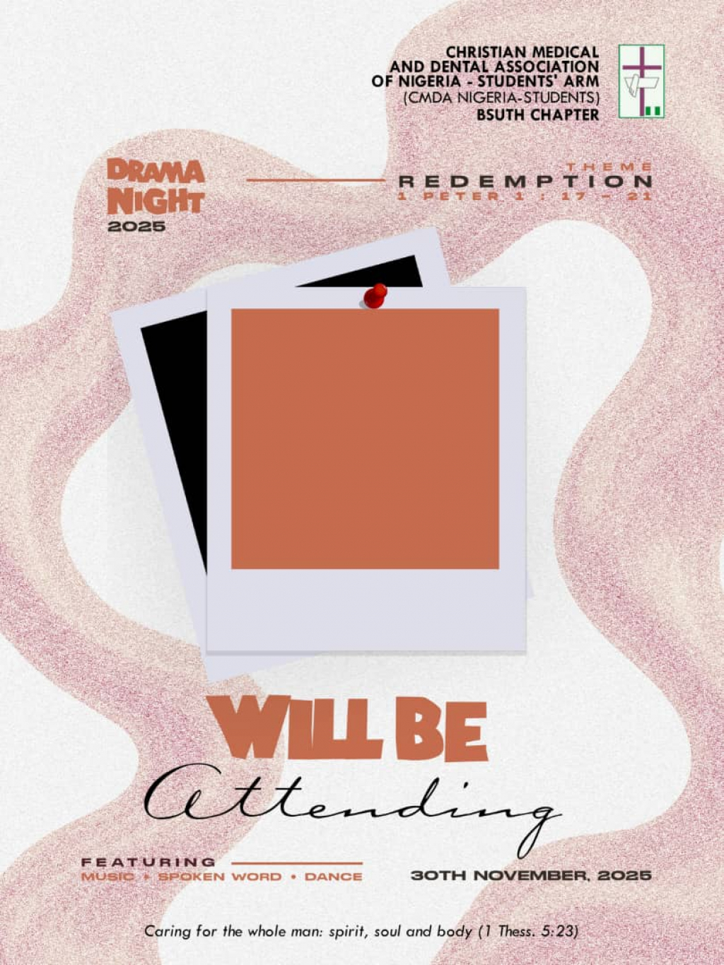 This is an I will be attending flier to increase publicity for Drama Night 2025