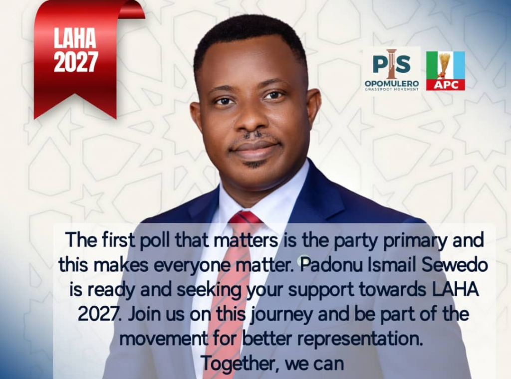 I stand with HON. PADONU ISMAIL SEWEDO (PIS) OPOMULERO aka PADONU Candidacy for Member of the Lagos State House of Assembly LAHA2027.