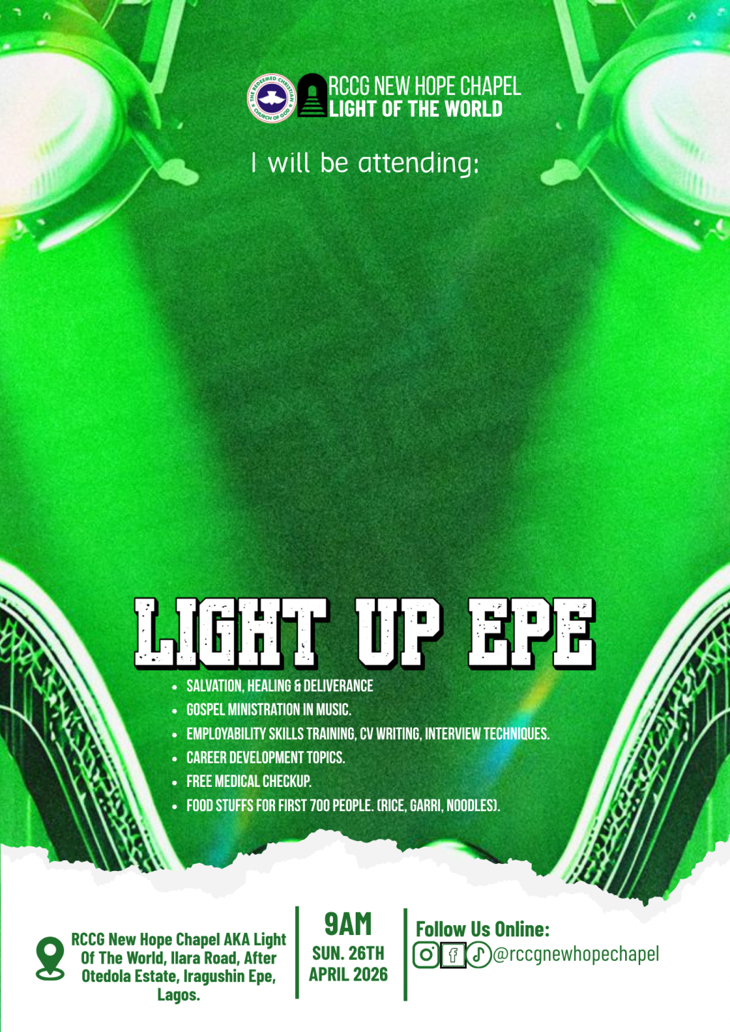 Faith based and welfare program in the city of Epe, Lagos State. For both young and old, come and experience the light of God.