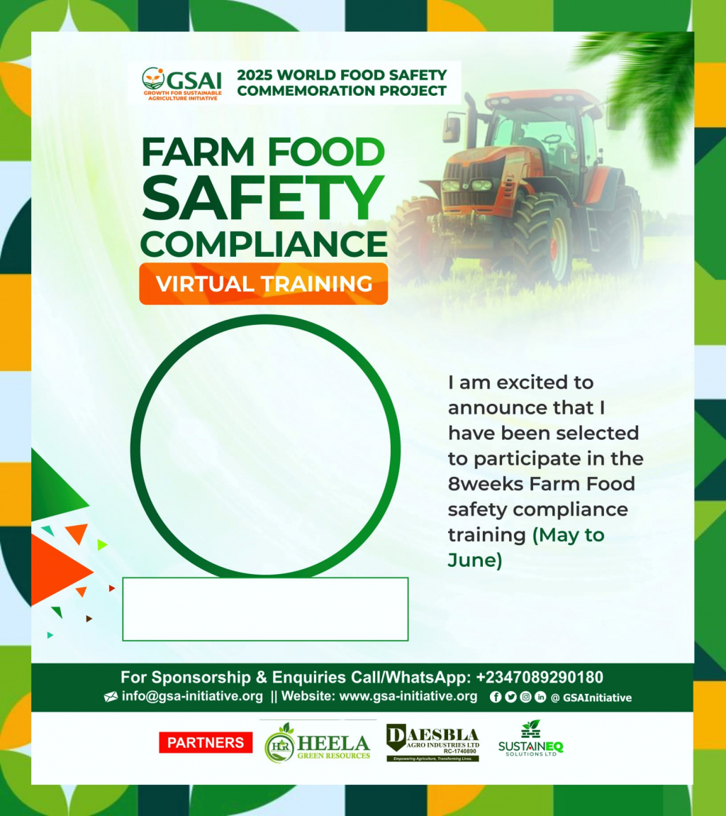 I am excited to announce that I have been selected to participate in the 8weeks Farm Food safety compliance training (May to June).