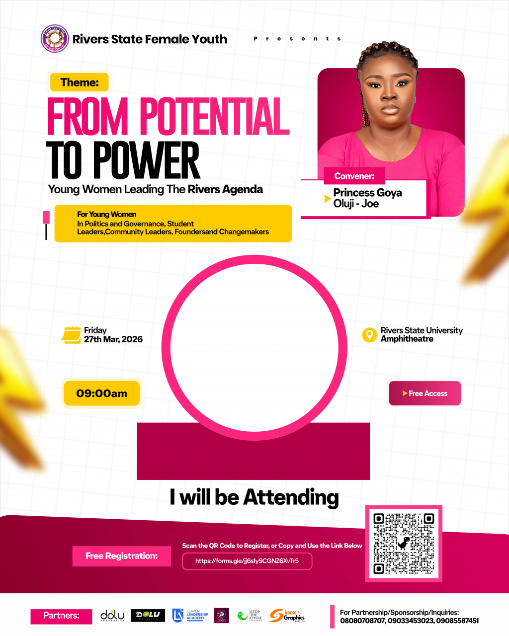 I will be attending From Potential to Power — a powerful gathering of young women leading the Rivers agenda.Join me at Rivers State University...