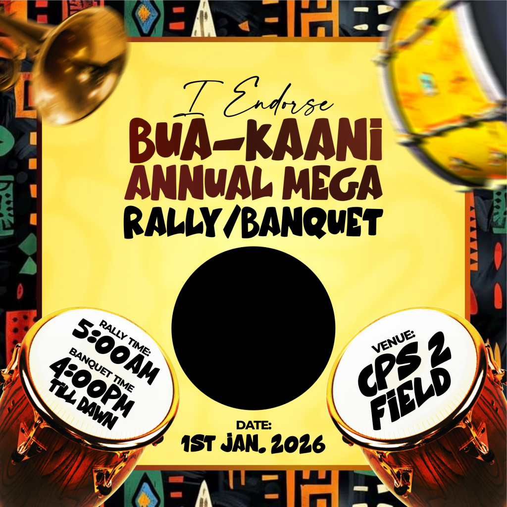 Create your own design (dp) for the upcoming BUA-KAANI ANNUAL MEGA RALLY/BANQUET 2026