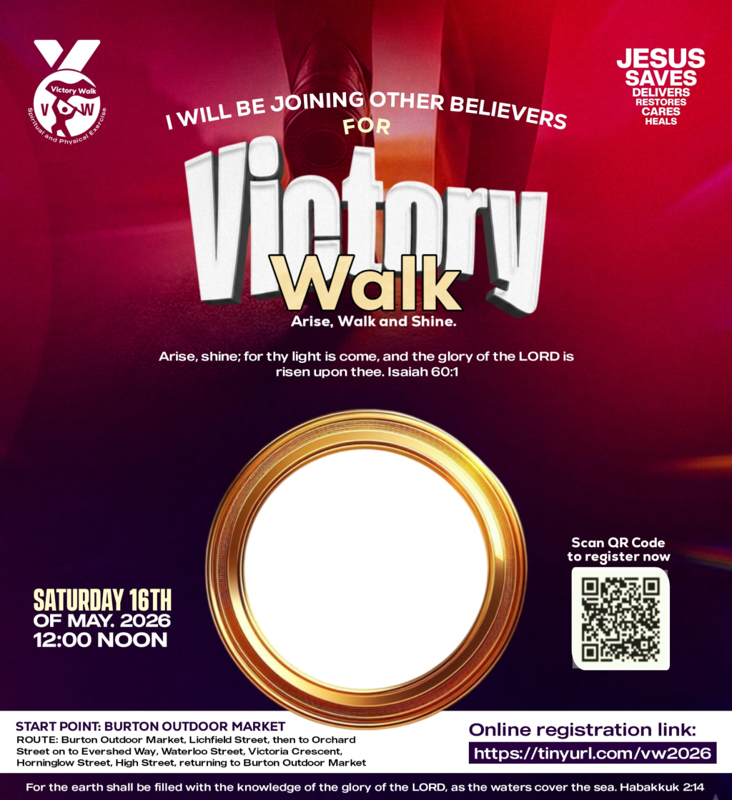 Victory Walk is a prophetic march of light, and dominion across Burton. Believers are rising to declare Jesus in the streets, shift atmospheres,...